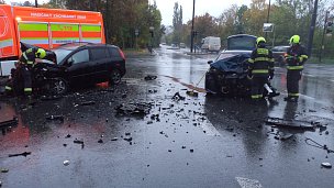 V ulici Drnovská zasahují pražští hasiči u dopravní nehody dvou osobních vozidel. Jedná osoba je v péči záchranářů.