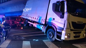 Na nájezdu na Radotínský most se převrátil přívěs kamionu vezoucí 35 tun dřeva. Zvednutí vzhledem k váze není v silách HZS a byla tedy vyžádána součinnost soukromé společnosti.
