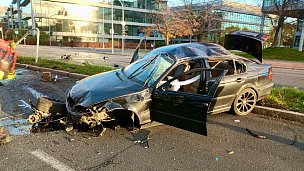 Jeden osobní automobil narazil do semaforu v ulici Roztylská. Na místo vyjeli hasiči ze stanice Chodov. Provedli zajištění vozidla a zasypání uniklých provozních kapalin. Jedna osoba je v péči záchranářů.